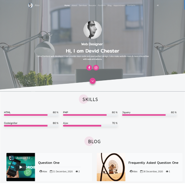 + Do it same for menu About, Review, Skills, Resume, Team...